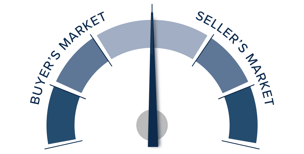 This speedometer reflects the state of the region’s real estate market using housing inventory, price gains, home sales, interest rates, and larger economic factors.